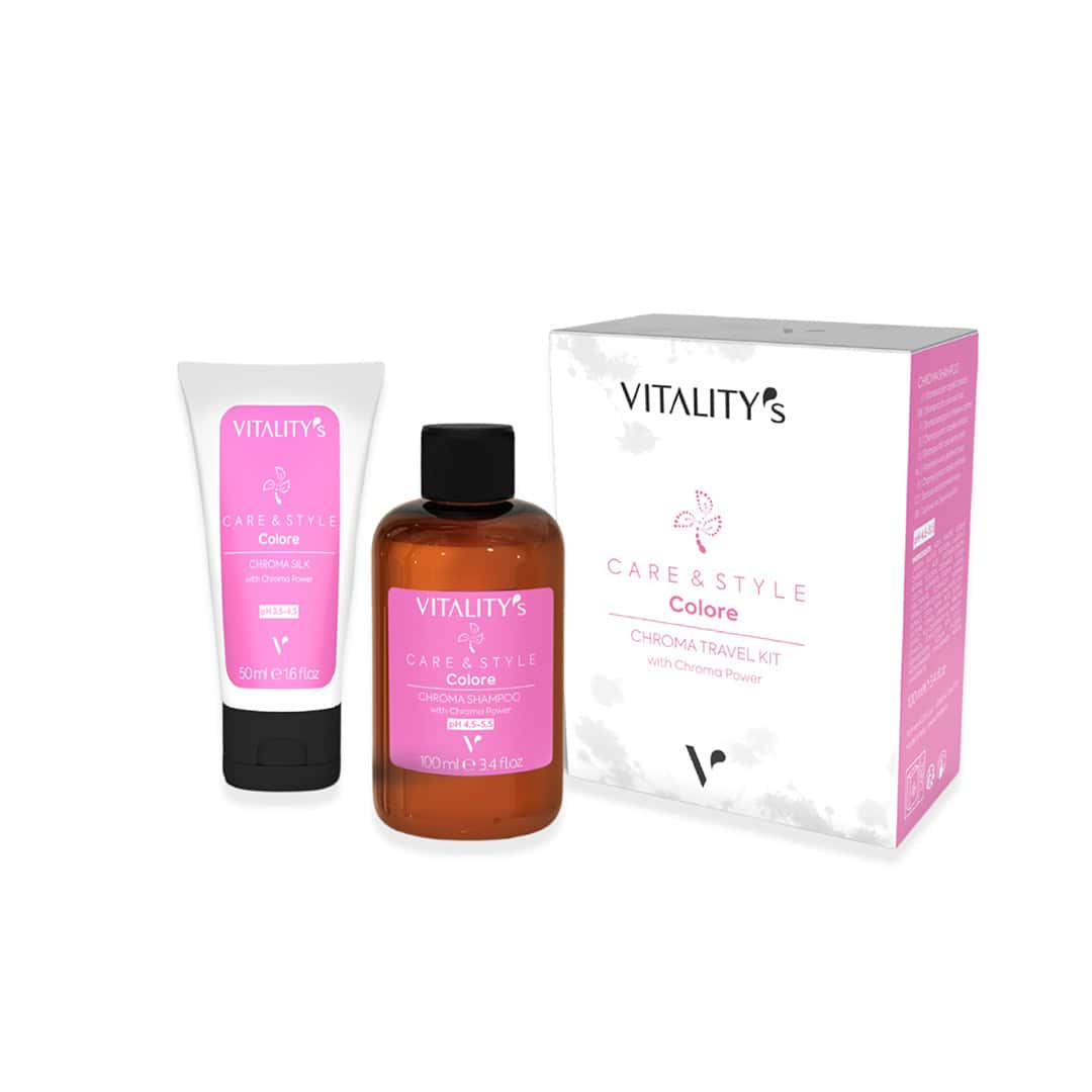 Αρχική σελίδα / Περιποίηση μαλλιών / Λάδια μαλλιών / Vitalitys Chroma Set Care&Style Travel Kit Shampoo&Silk 100ml&50ml